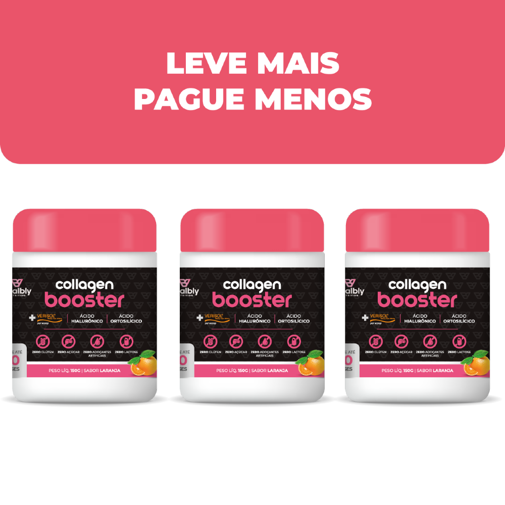 Conheça o Collagen Booster, o suplemento de colágeno concentrado que vai transformar sua pele. Com composição completa e potente, ele oferece benefícios incríveis e rende até 30 doses. Sua fórmula exclusiva promove a firmeza, elasticidade e hidratação da pele, além de fortalecer cabelos e unhas. Com o Collagen Booster, você aproveita ao máximo cada dose, graças à sua alta concentração. Descubra o segredo para uma aparência radiante e jovem. Experimente agora e desfrute de todos os benefícios do melhor colágeno do mercado.